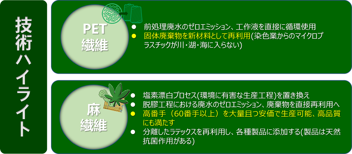 染色前処理廃水のゼロエミッションを実現する。
