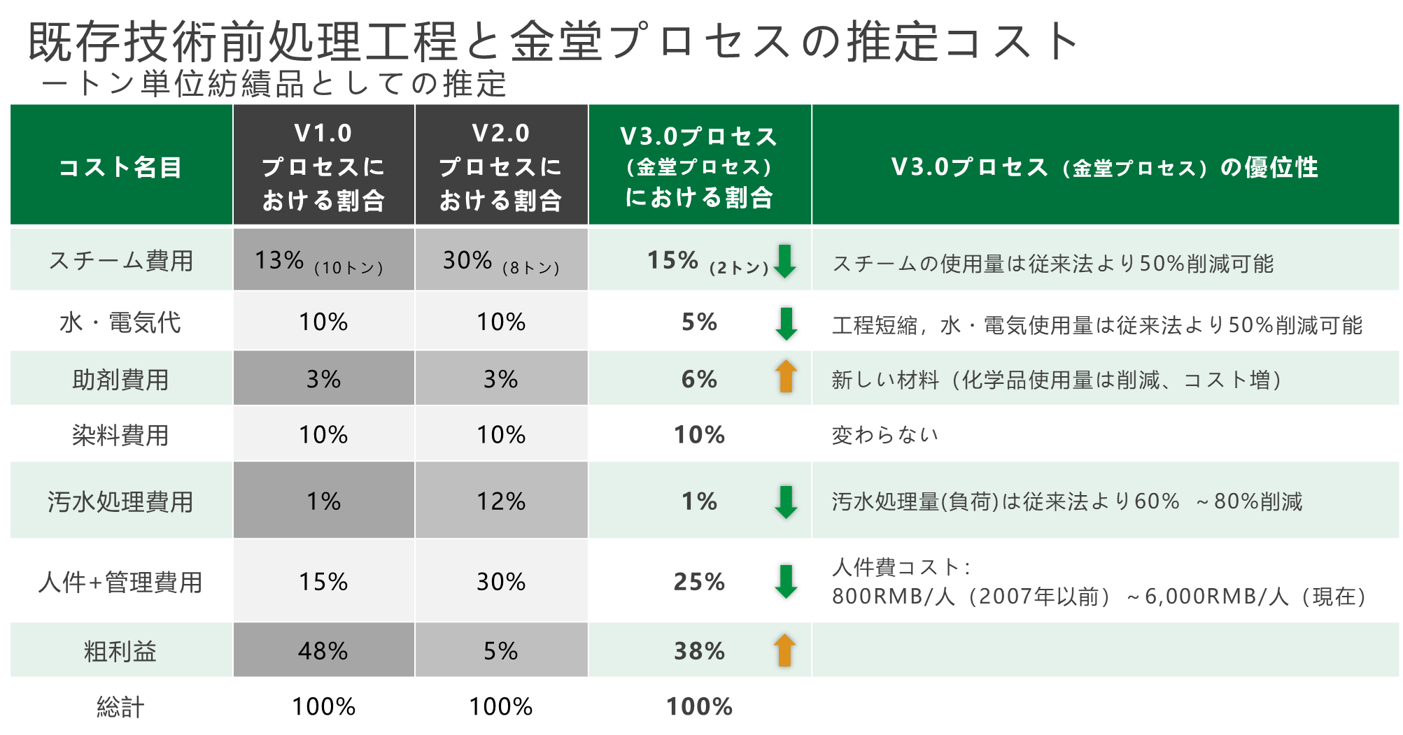 基準品質を満たしても、生産プロセスが長く、汚水排出量が大きい。社會環境への負荷が大きい。
