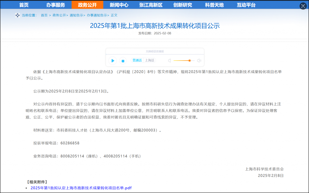 摘要:上海市科學技術委員會,上海市高新技術
