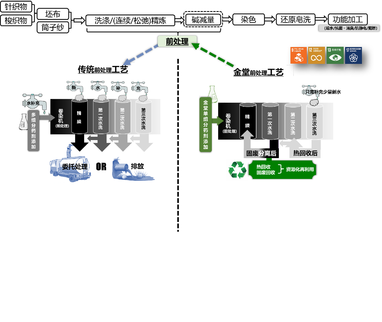 以燒堿為主要化學品的前處理工藝,看似簡單可行卻是一個完全非標、低效、高耗的生產工藝。